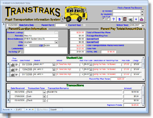 TransTraks also comes with a powerful Parent Pay System (for those states that allow parent paid school transportation). You get passes, invoicing, reconciliation, etc., as part of the system.