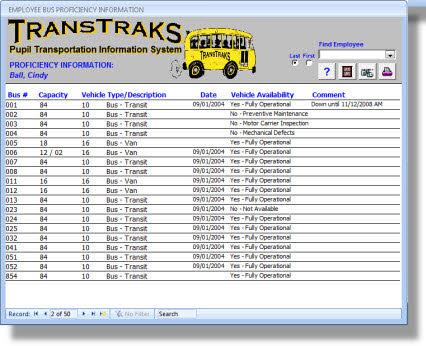 TransTraks also comes with a Vehicle Proficiency System, allowing Dispatch to easily know which vehicles can be driven by each driver.